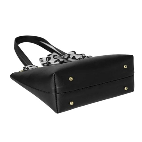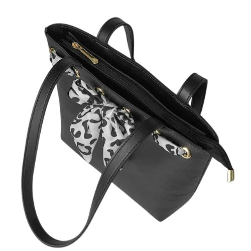This stylish women’s shoulder handbag features a sleek black design with a chic printed bow, creating a modern and elegant everyday look. Its spacious interior with a secure zip closure and practical pocket helps keep essentials organized and easy to carry. Lightweight and comfortable, it’s perfect for work, casual outings, and daily use.
